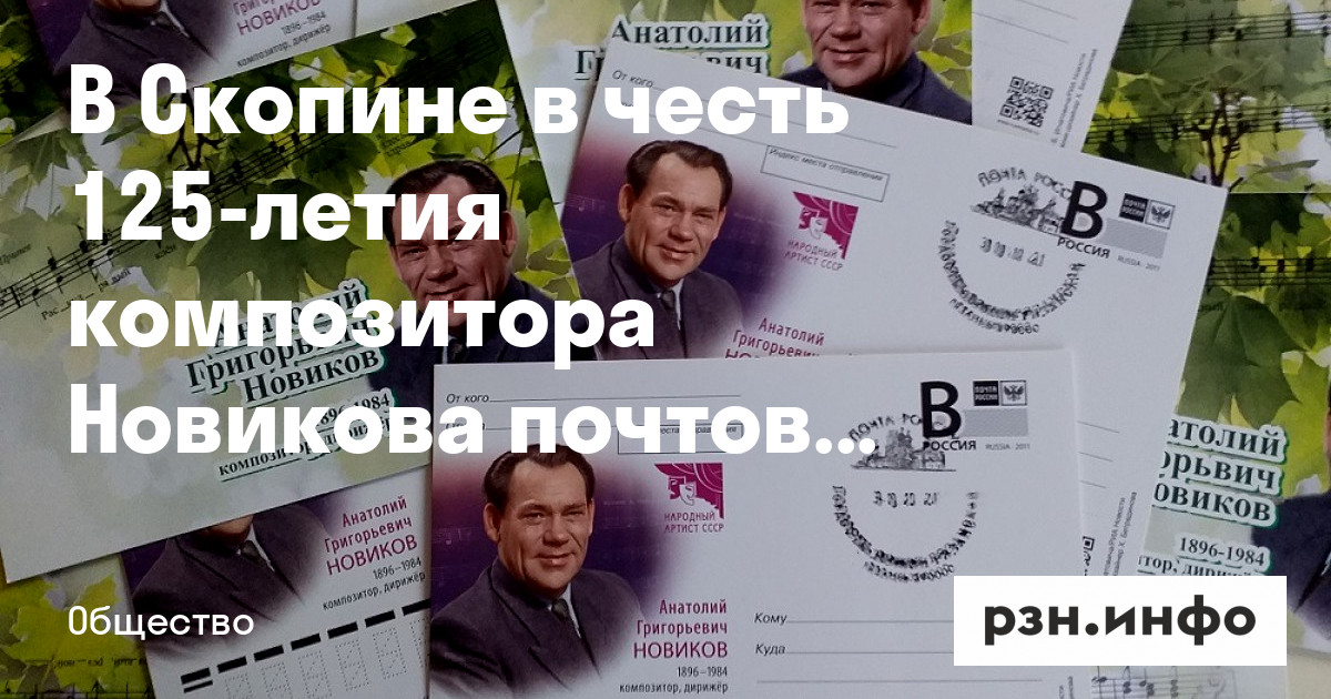 Церемония проходила в краеведческом музее Скопина, где родился советский композитор, хоровой дирижер, народный артист СССР Анатолий Новиков. Ее провели епископ Скопинский и Шацкий Питирим, начальник управления культуры и туризма администрации муниципального образования Скопина Марина Ретюнская и заместитель начальника Скопинского почтамта УФПС Рязанской области Галина Сычева.