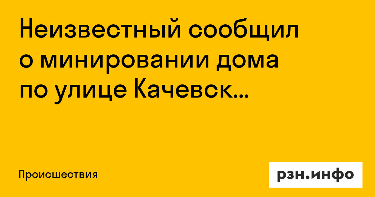 В Рязани неизвестный сообщил о минировании дома по улице Качевской. Об этом РЗН. инфо сообщил собственный источник в правоохранительных органах.