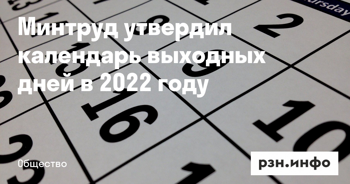 Минтруд утвердил календарь выходных дней в 2022 году
