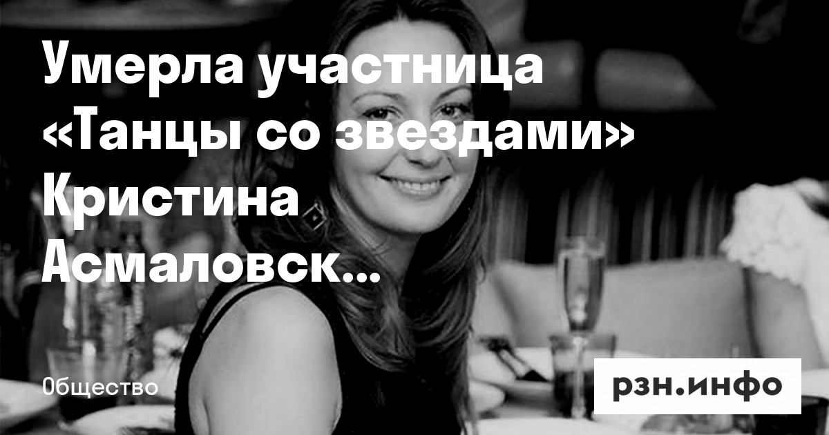 Умерла участница «Танцы со звездами» Кристина Асмаловская. Об этом сообщила ее коллега Татьяна Черняева на своей странице в Facebook.