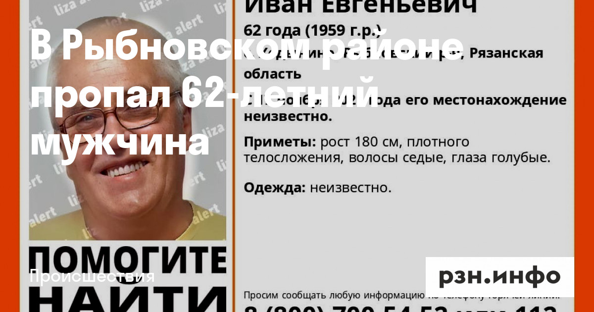 В селе Ходынино Рыбновского района пропал Иван Евгеньевич Загадаев 1959 года рождения. Об этом сообщают волонтеры поисково-спасательного отряда «ЛизаАлерт».