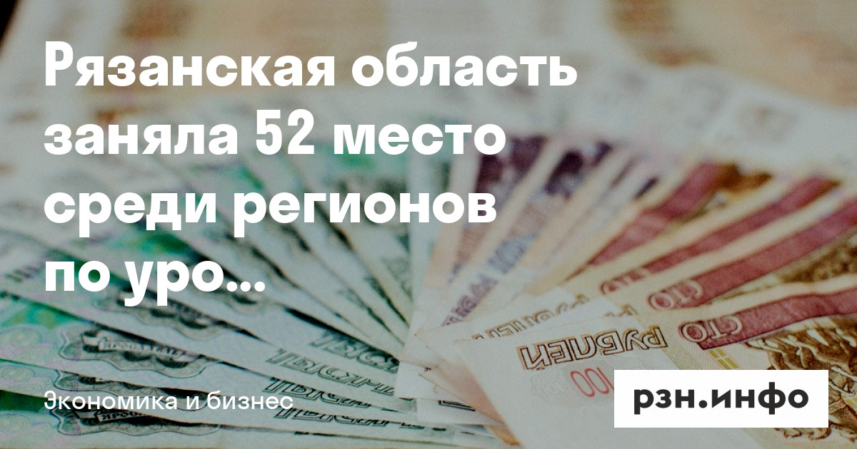 Рязанская область заняла 52 место среди регионов по уровню зарплат. Всего в рейтинге приняли участие 85 регионов. Исследование провели РИА Новости.
