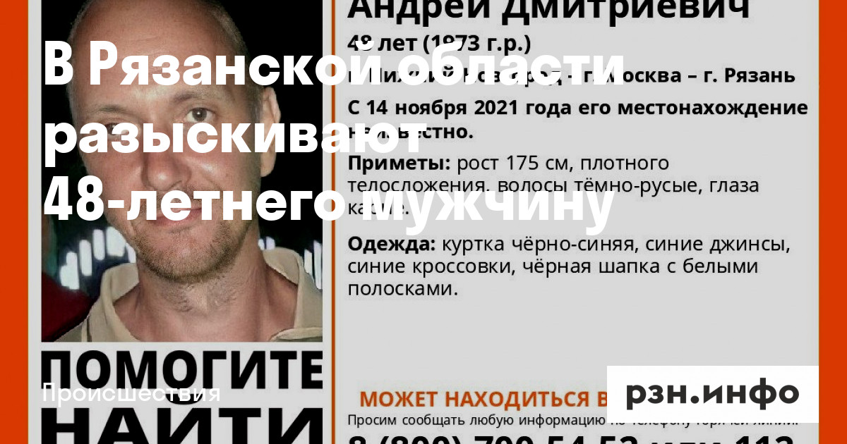 Мужчина пропал 14 ноября. С тех пор его местонахождение неизвестно. По данным поисково-спасательного отряда, он может находиться в Нижнем Новгороде, Москве или Рязани.