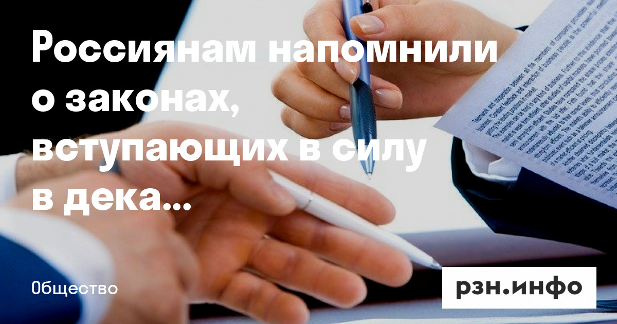Россиянам напомнили о законах, вступающих в силу в декабре
