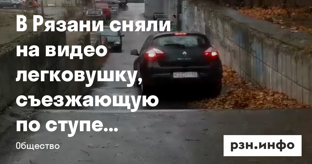 В Рязани на видео попал водитель, съезжающий по ступеням тротуара. Ролик опубликован в соцсетях.