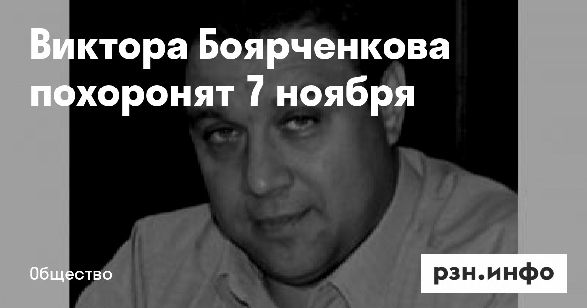 Главу Сапожковского района Виктора Боярченкова похоронят в воскресенье, 7 ноября. Церемония прощания пройдет в РДК «Надежда» на улица Советской, 15 в Сапожке с 10:00 до 11:00, сообщается на сайте ИД