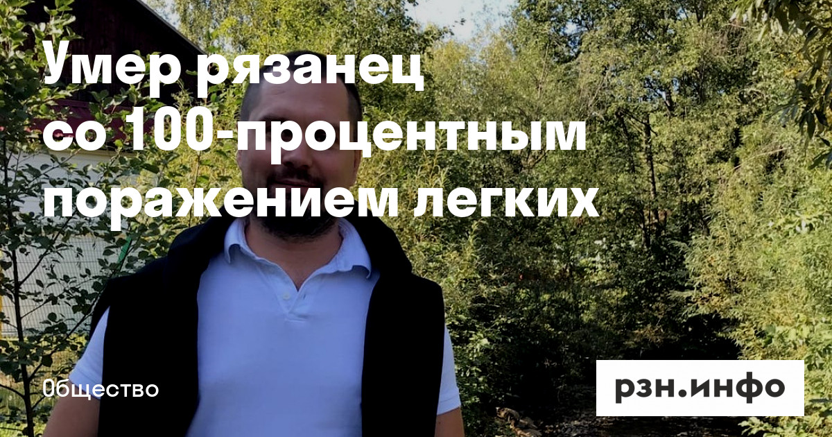 Умер рязанец со 100-процентным поражением легких. Об этом сообщила его супруга на странице «».