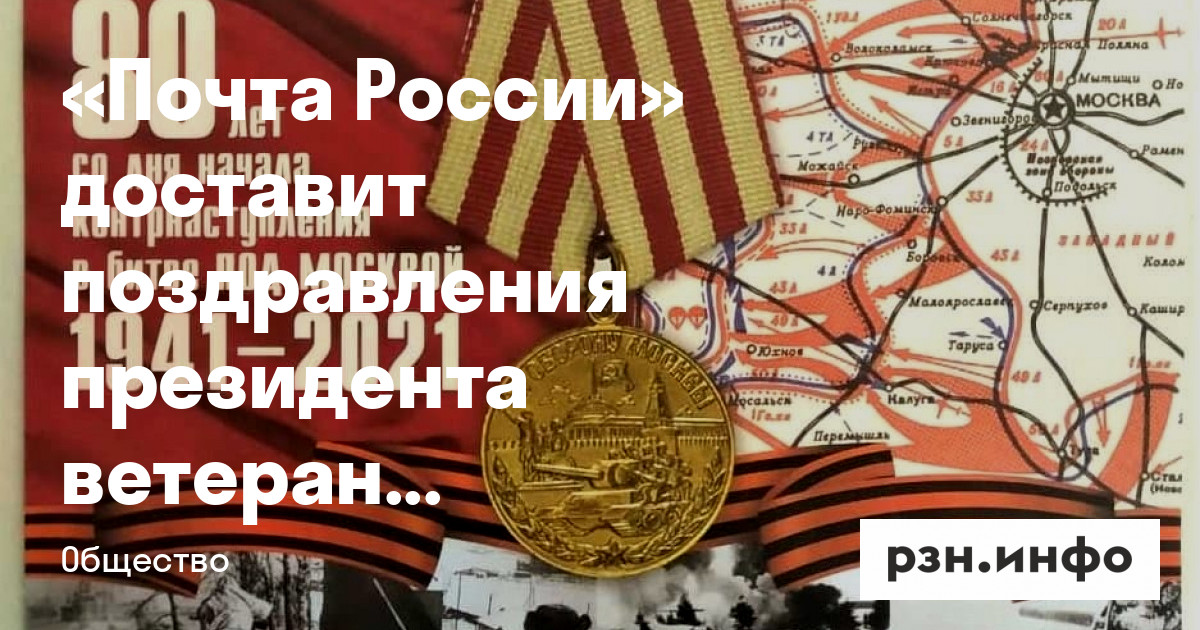 Накануне 80-й годовщины начала контрнаступления советских войск в битве под Москвой «Почта России» доставит ветеранам Великой Отечественной войны, награжденным медалью «За оборону Москвы», персональные поздравления, подписанные президентом России. С 1 по 4 декабря включительно более 900 почетных адресатов по всей стране, в том числе и в Рязанской области, получат поздравление главы государства.