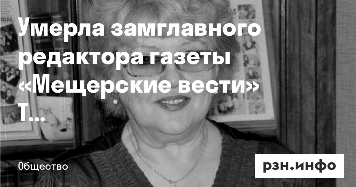 Скончалась заместитель главного редактора газеты «Мещерские вести» Татьяна Кузьмина. Об этом пишет ИД «».
