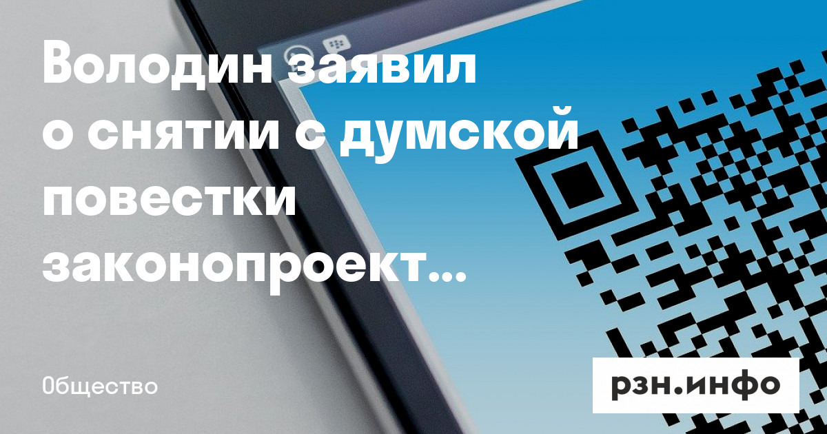 Володин заявил о снятии с думской повестки законопроекта о QR-кодах