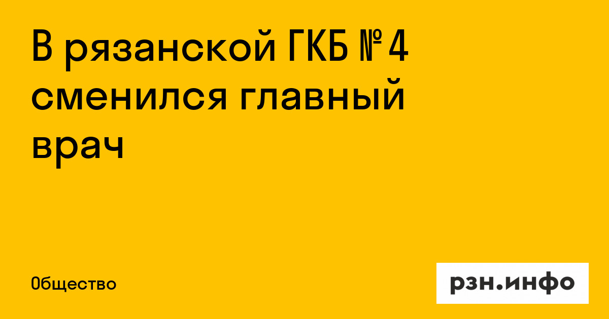 В рязанской ГКБ № 4 сменился главный врач. Соответствующая информация появилась на учреждения.