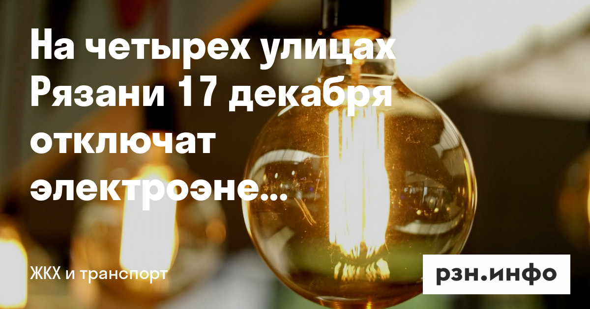 На четырех улицах Рязани 17 декабря отключат электроэнергию