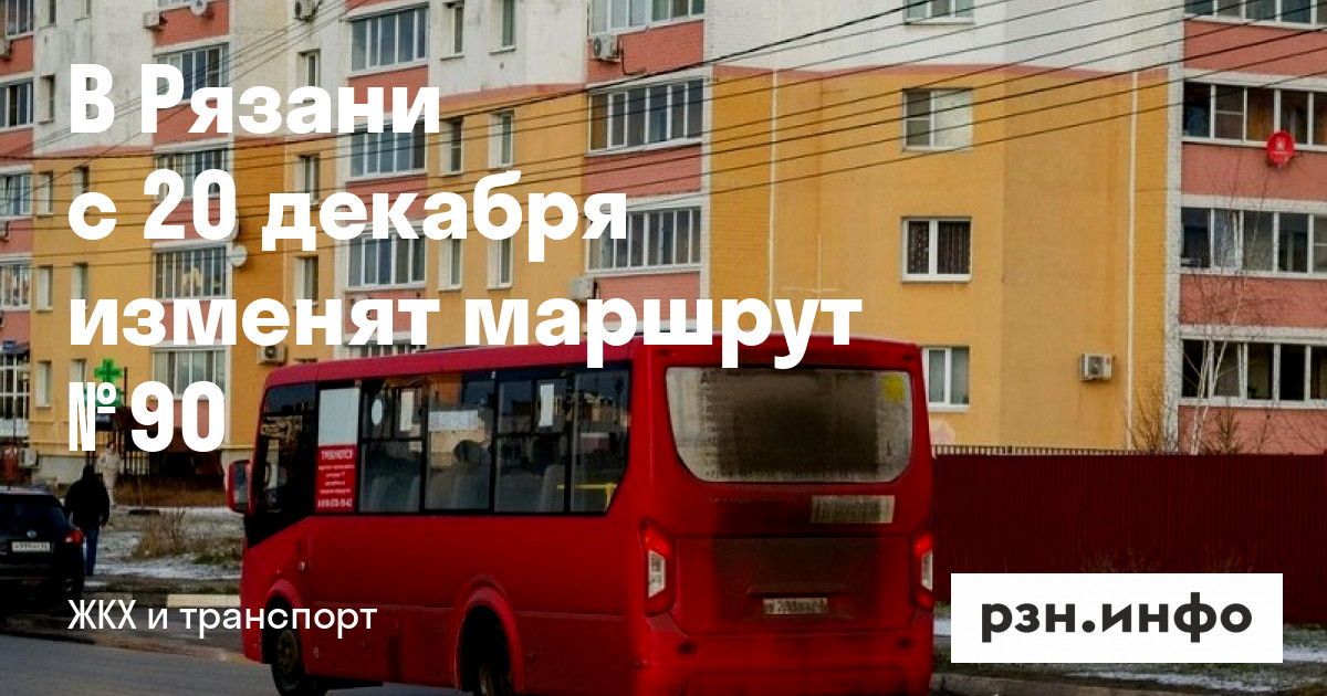 В Рязани с 20 декабря изменят маршрут № 90. Об этом сообщили на сайте администрации.