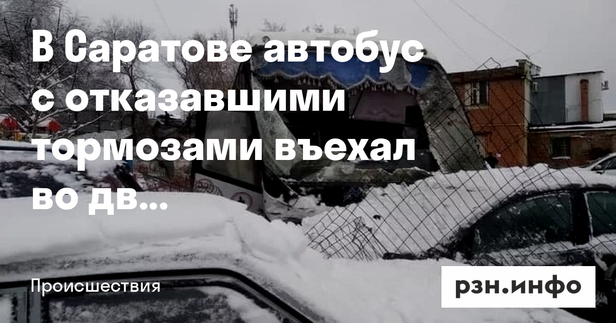 Междугородний автобус протаранил несколько автомобилей и въехал во двор дома в Саратове из-за отказа тормозов. По данным мэрии города, пострадали семь человек.