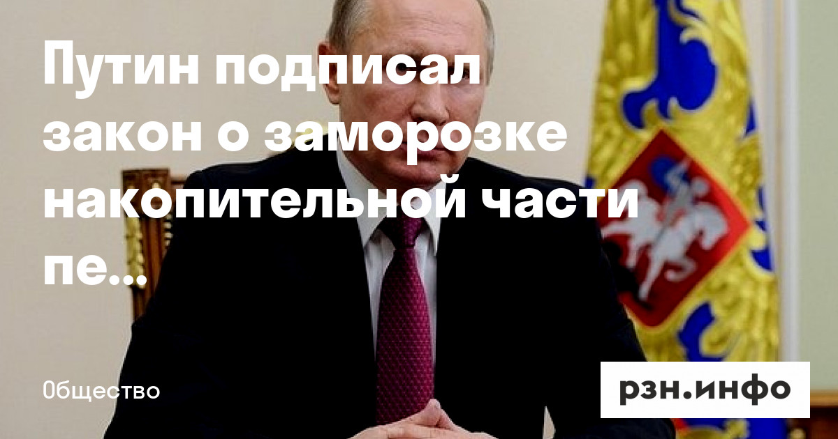 Путин подписал закон о заморозке накопительной части пенсии до 2024 года. Документ разместили на интернет-портале правовой информации.