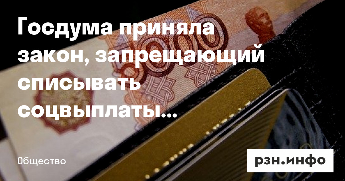 Госдума приняла в третьем, окончательном чтении и законопроект, который устанавливает неприкосновенность соцвыплат от списания в счет долга. Об этом говорится на нижней палаты парламента.