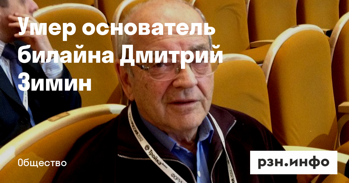 Умер основатель билайна и фонда «Династия» Дмитрий Зимин. Об этом на странице в Facebook его сын Борис Зимин.