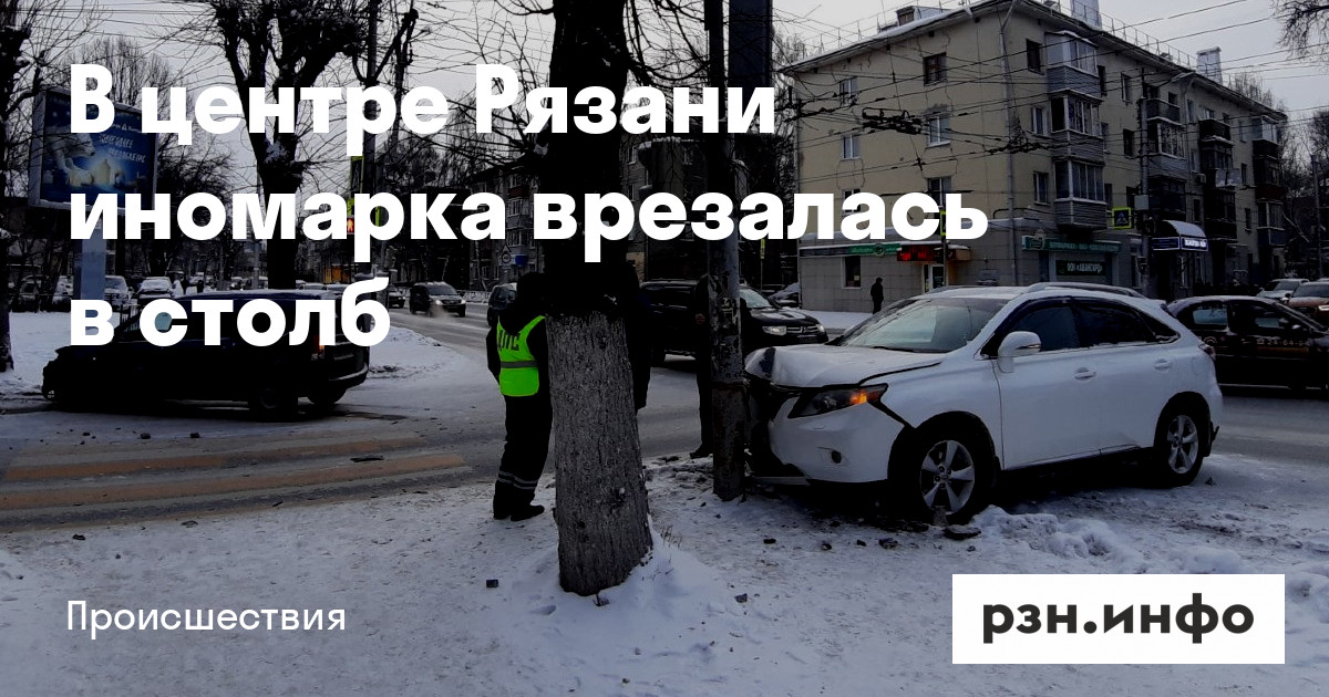 В центре Рязани иномарка врезалась в столб. Видео разместили очевидцы в соцсетях.