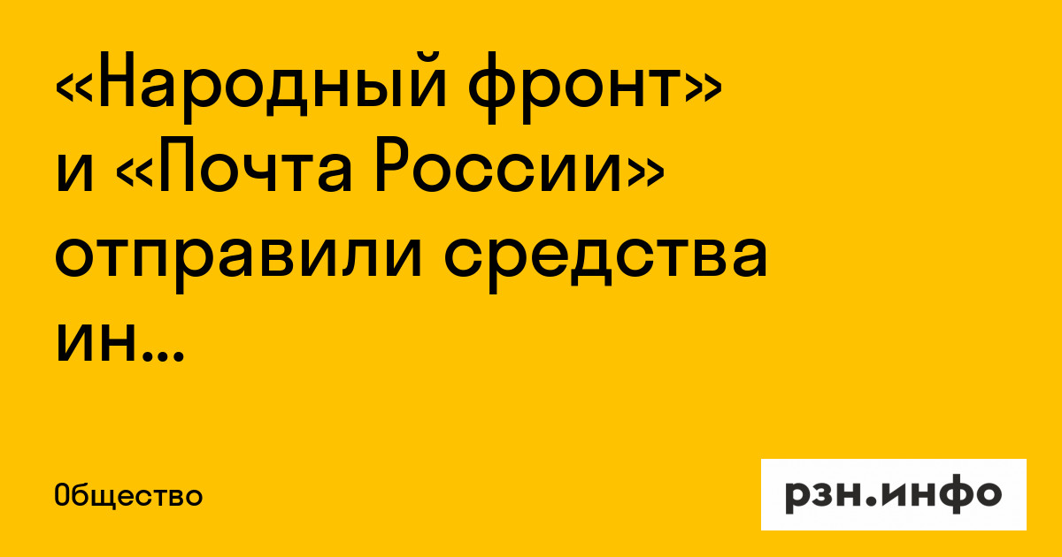 «Народный фронт» и «Почта России» отправили в больницы медицинские маски, защитные костюмы и антисептики в рамках акции взаимопомощи #МыВместе. Всего «Почта России» доставит более 590 000 средств индивидуальной защиты весом 2,9 тонн в 85 российских регионов. Для рязанских медиков отправлено около 7500 наименований средств индивидуальной защиты. Все расходы по отправке «Почта» взяла на себя.