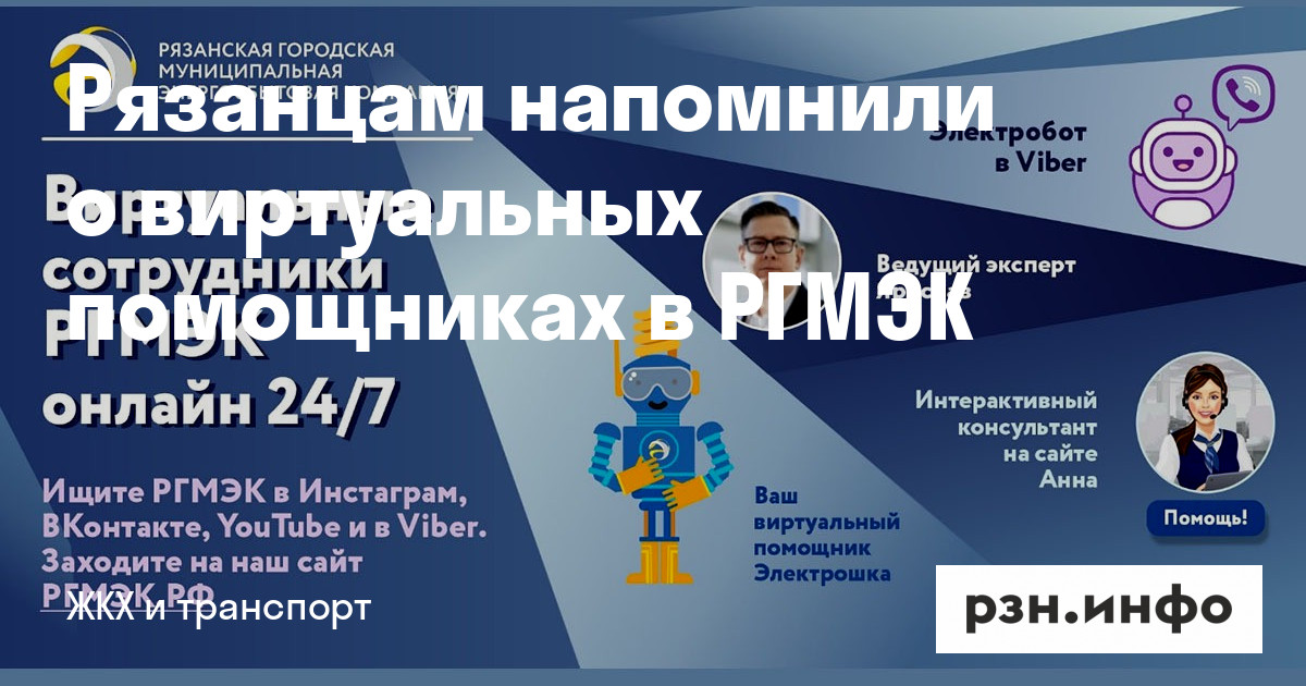 ООО «РГМЭК» (Рязанская городская муниципальная энергосбытовая компания) напомнила рязанцам, что в компании работают четыре виртуальных сотрудника, которые помогают обслуживать клиентов онлайн в режиме 24/7. Услугами помощников может воспользоваться любой потребитель — пользователь персональных компьютеров и мобильных устройств, вне зависимости от возраста, который желает получить информацию или услуги по вопросам энергоснабжения.
