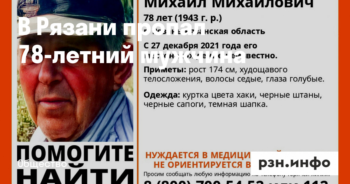 В Рязани пропал 78-летний Михаил Михалин. Об этом сообщил поисково-спасательный отряд «ЛизаАлерт».