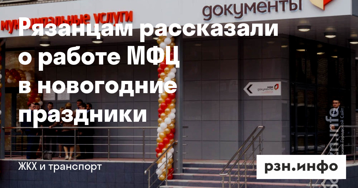 30 декабря центры «Мои документы» в Рязани и Рязанской области станут работать в обычном режиме. С 31 декабря по 9 января — нерабочие дни.