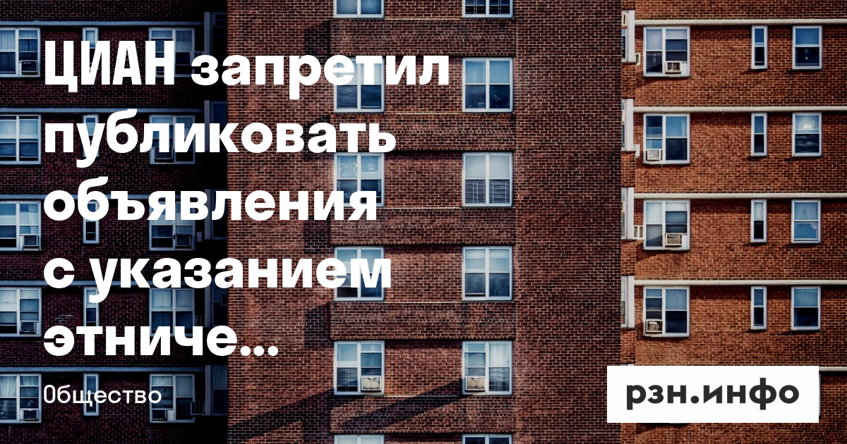 ЦИАН запретил публиковать объявления с указанием этнической принадлежности. Об этом в telegram-канале сервиса для риелторов и партнеров.
