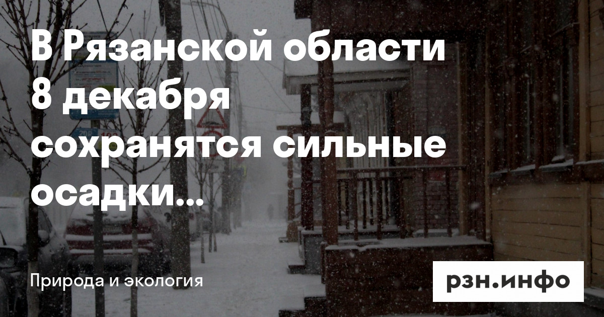 В среду, 8 декабря, на территории Рязанской области ожидаются сильные осадки (снег, мокрый снег), которые усилятся ночью. Возможно налипание мокрого снега, гололед и гололедица.