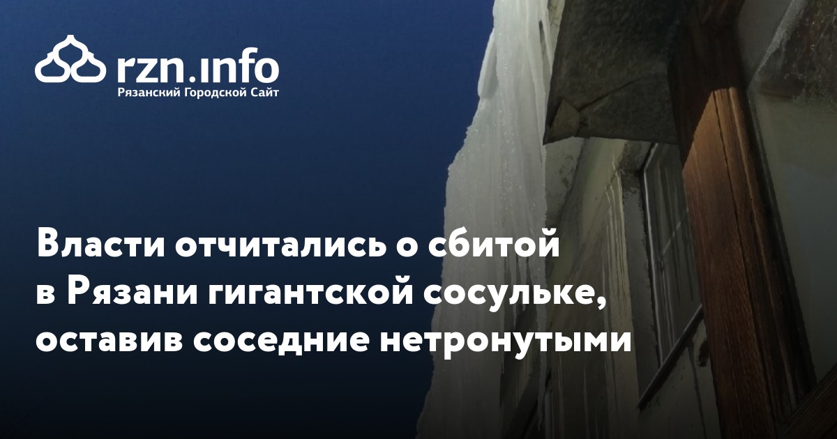 Власти отчитались о сбитой в Рязани гигантской сосульке, оставив соседние нетронутыми