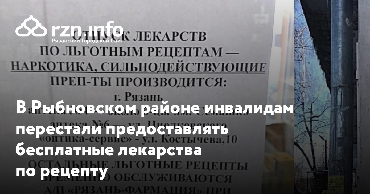 В Рыбновском районе с начала 2021 года инвалидам всех групп перестали предоставлять жизненно необходимые бесплатные рецептурные лекарства. В этом отказала последняя из работавших с льготниками аптек, на своей странице помощник депутата Госдумы Александр Стариков.