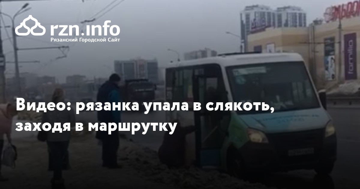 Видео: рязанка упала в слякоть, заходя в маршрутку