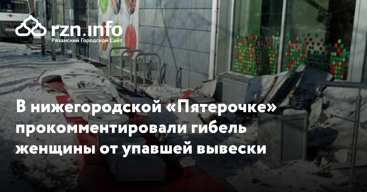 Представители торговой сети «Пятерочка» в Нижнем Новгороде прокомментировали инцидент, в результате которого погибла женщина. В понедельник, 1 марта, на пенсионерку рухнула вывеска с магазина на улице Сергея Тюленина.
