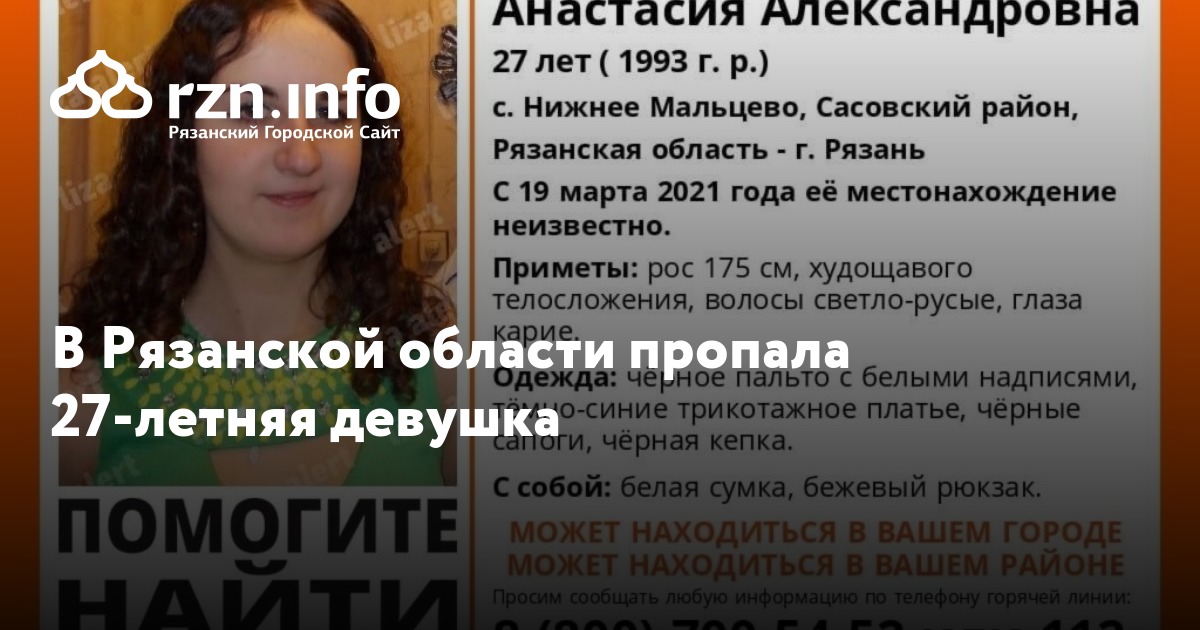 Голынина Анастасия Александровна 1993 года рождения пропала в селе Нижнее Мальцево Сасовского района. Об этом в группе поискового отряда «ЛизаАлерт».