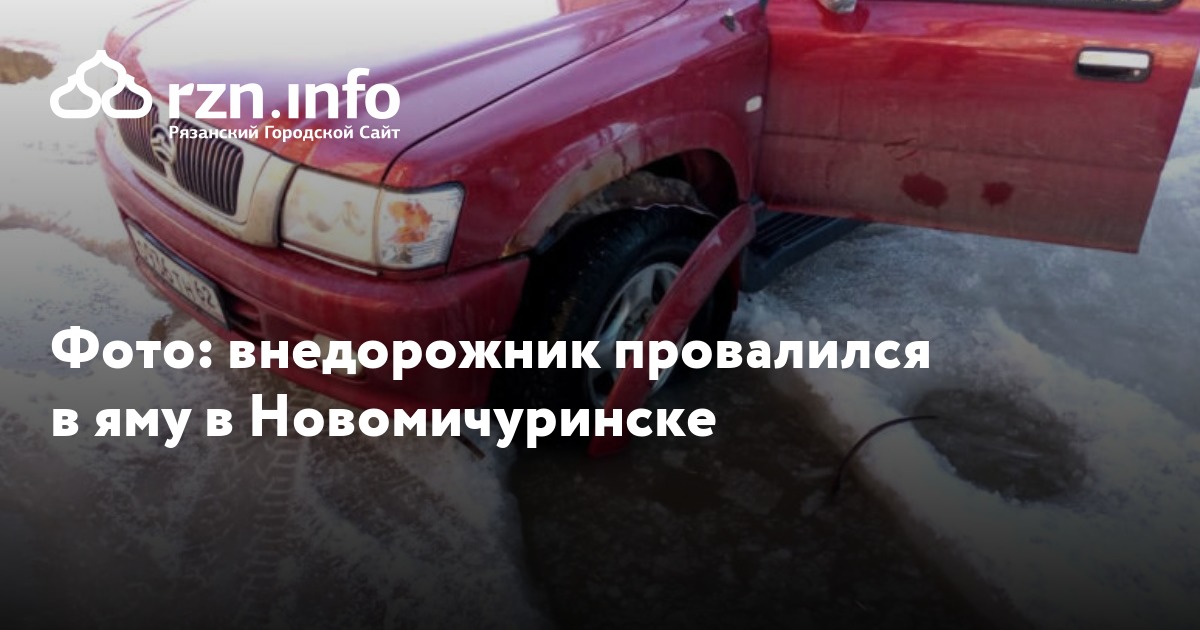 Фото: внедорожник провалился в яму в Новомичуринске