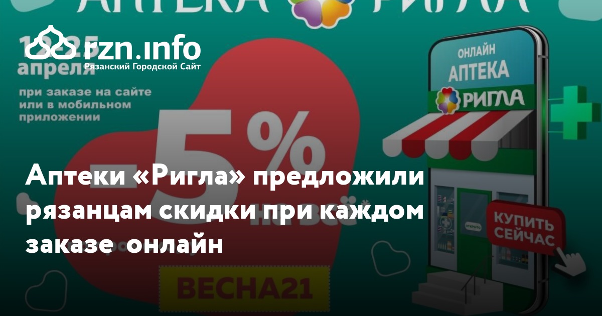 С 12 по 25 апреля в аптеках «Ригла» действуют весенние скидки. При заказе в мобильном приложении «Аптека Ригла» и на сайте по промокоду ВЕСНА21 доступна скидка 5%.