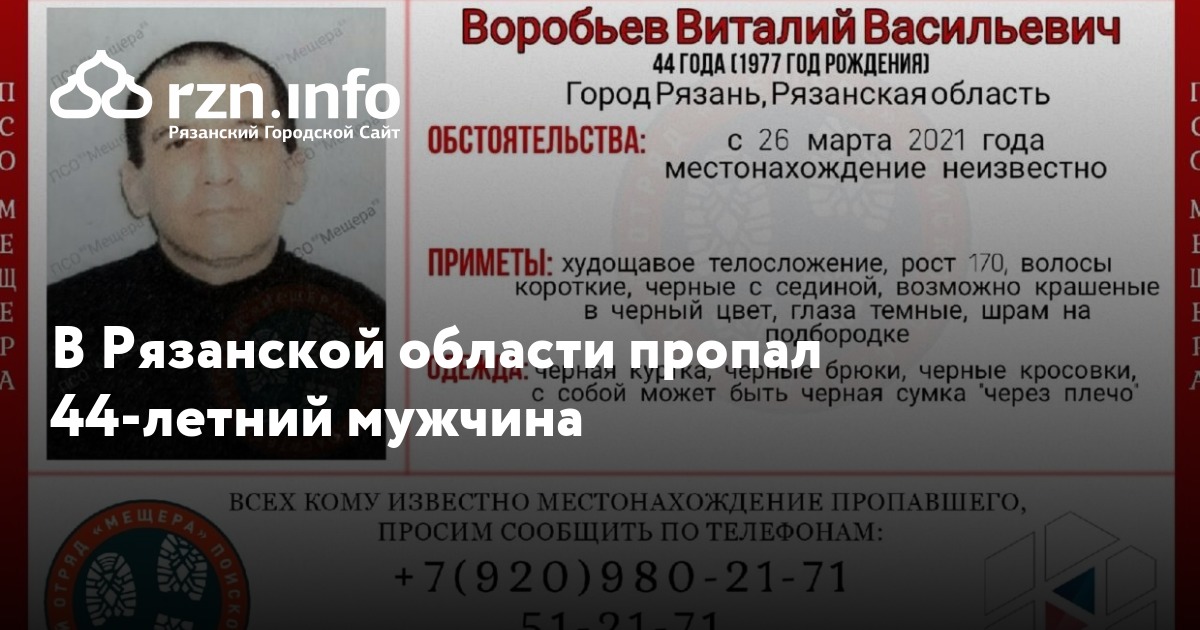 В Рязанской области пропал 44-летний Виталий Воробьев. Об этом рязанский поисково-спасательный отряд «Мещера».