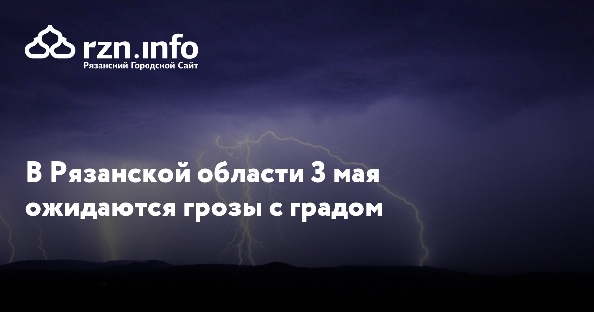 В Рязанской области в понедельник, 3 мая, пройдут кратковременные дожди, местами гроза, днем в отдельных районах град. Прогноз на сайте регионального ГУ МЧС.