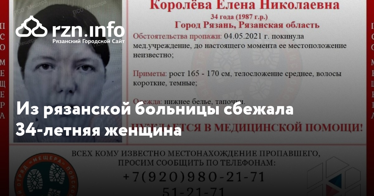 В Рязани из медучреждения сбежала Королева Елена Николаевна 1987 года рождения. Об этом сообщил рязанский поисково-спасательный отряд «».