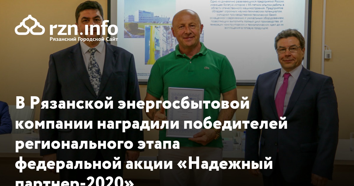 Региональный этап акции «Надёжный партнер» в Рязанской области проводится по инициативе ПАО «РЭСК» (входит в Группу РусГидро) и направлен на поддержку сбытовой деятельности, а также укреплению партнёрских отношений с потребителями энергоресурсов и налаживанию платежной дисциплины.