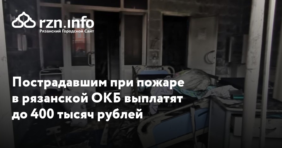 Пострадавшим во время пожара в рязанской ОКБ имени Семашко по результатам судебно-медицинской экспертизы власти выплатят до 400 тысяч рублей. Об этом сообщает в субботу, 12 июня.