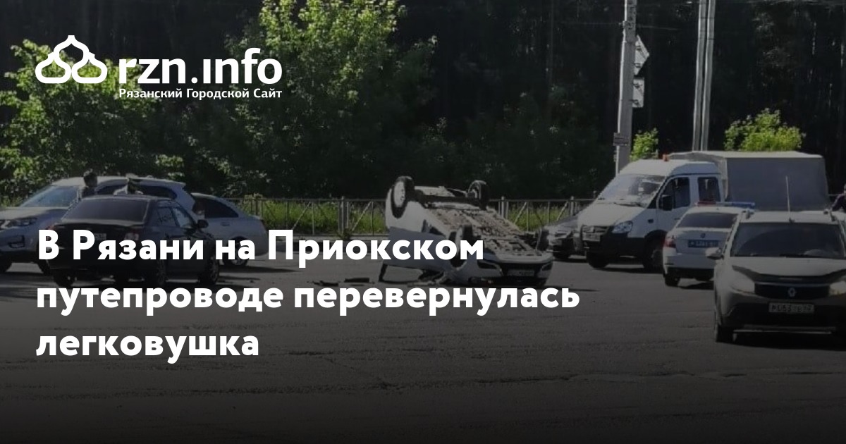 В Рязани на Приокском путепроводе перевернулась легковушка