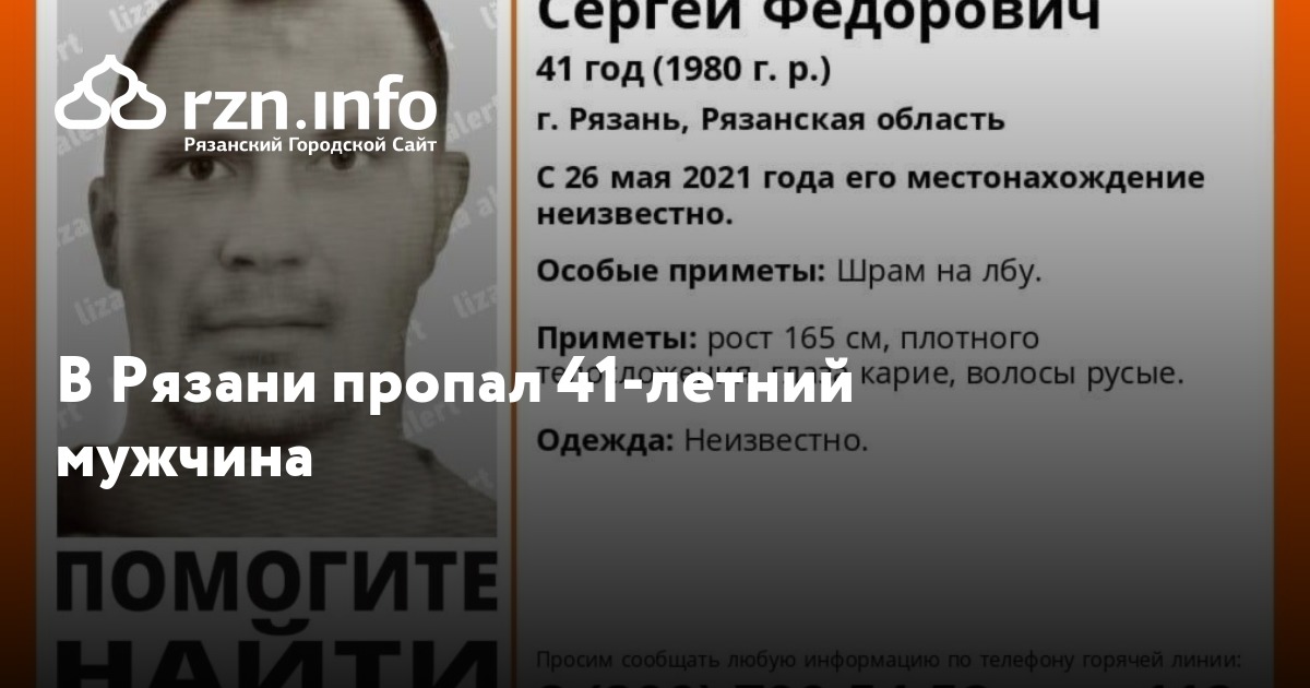 В Рязани пропал 41-летний мужчина. Об этом сообщили волонтеры поискового отряда «ЛизаАлерт».