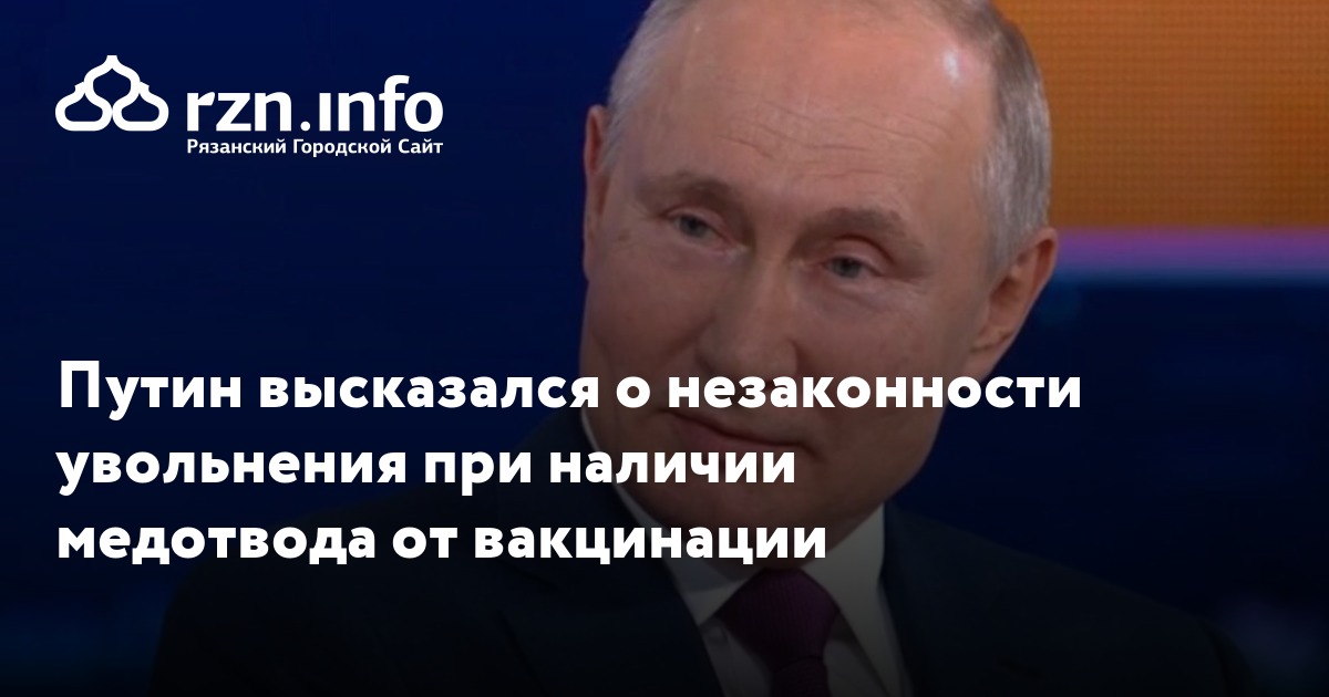 Отвечая на один из присланных вопросов, президент сообщил, что при наличии медотвода увольнение с работы за отсутствие прививки является незаконным.