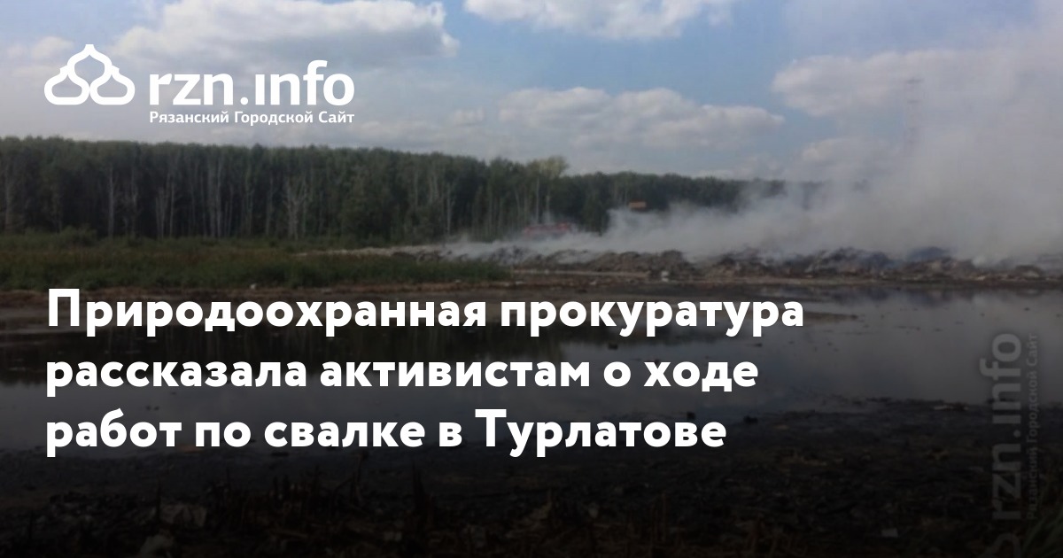 Руководитель рязанской природоохранной прокуратуры Алексей Секин на личном приеме сообщил представителям организации о ходе работ по вопросу свалки в Турлатове. По его словам в настоящее время владельцам свалки запрещено переименовывать и передавать имущество другим лицам (наложены обеспечительные меры), а также завозить отходы на свалку.
