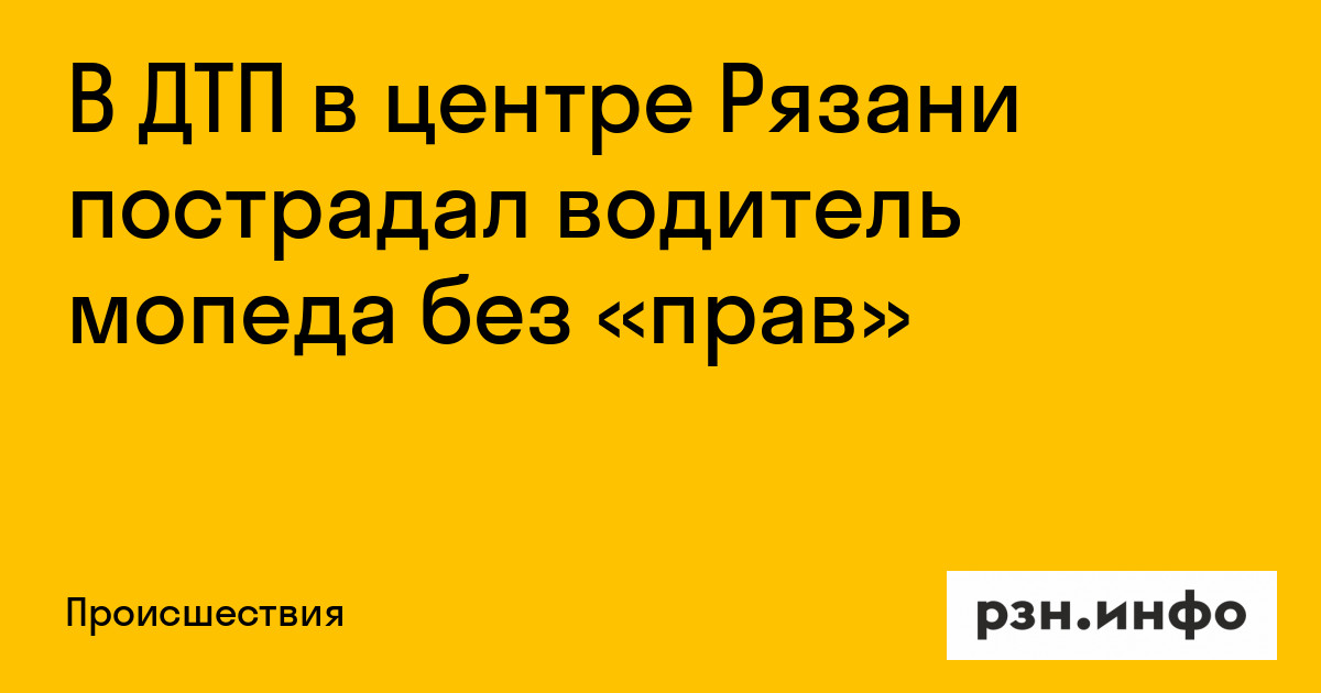 21-летний рязанец на Lada Vesta поворачивал налево и столкнулся с мопедом Raser, который двигался во встречном направлении. Мопедом управлял 21-летний житель Рязани, который не имел права управления транспортными средствами.