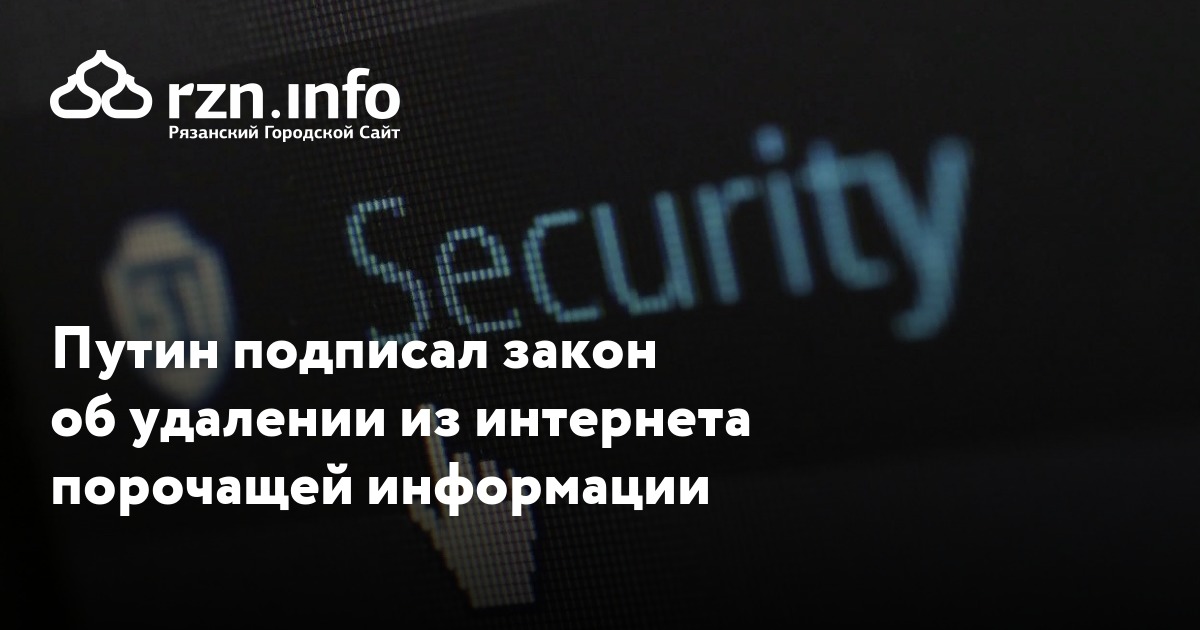 Путин подписал закон об удалении из интернета порочащей информации. Об этом РИА Новости.
