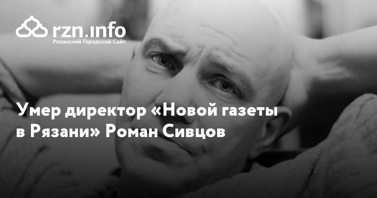 Умер директор «Новой газеты в Рязани» Роман Сивцов. Об этом стало известно во вторник, 6 июля, сообщает «».