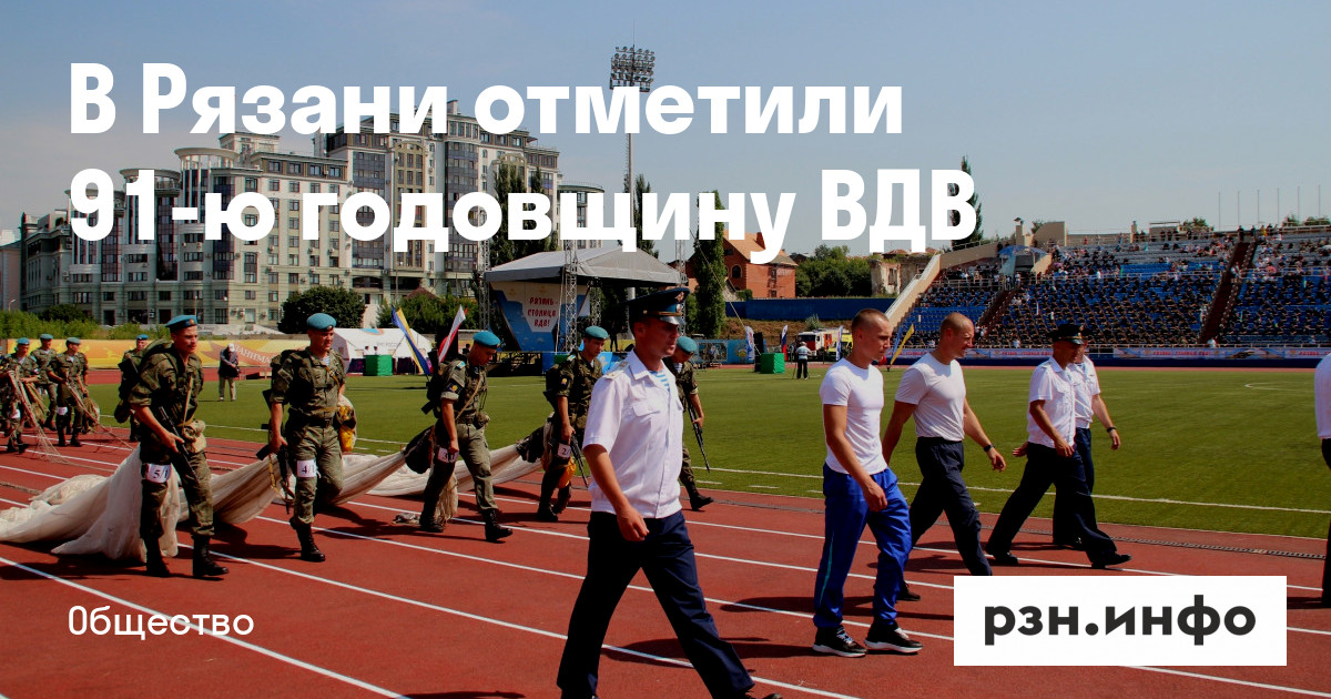 После официальной части прошли показательные выступления роты почетного караула десантного училища, а на стадион приземлились спортсмены-парашютисты с флагами России, ВДВ и Рязани.