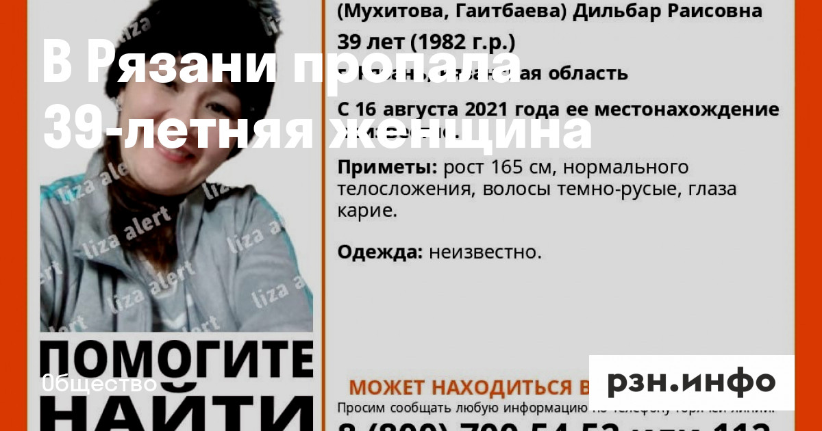 В Рязани пропала Тугузбаева (Мухитова, Гаитбаева) Дильбар Раисовна 1982 года рождения. Об этом волонтеры поисково-спасательного отряда «ЛизаАлерт».