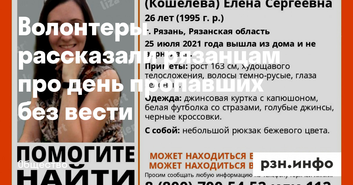 Волонтеры поисково-спасательного отряда «ЛизаАлерт» рязанцам про день пропавших без вести. По всему миру его отмечают 30 августа.
